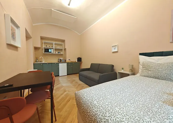 Spacious, Light Studio Apartment In Vinohrady ferielejlighed ligger i Prague 2 område i Prag, 20 km fra Vaclav Havel lufthavn. Denne indkvartering består af 1 soveværelser og 1 badeværelser.